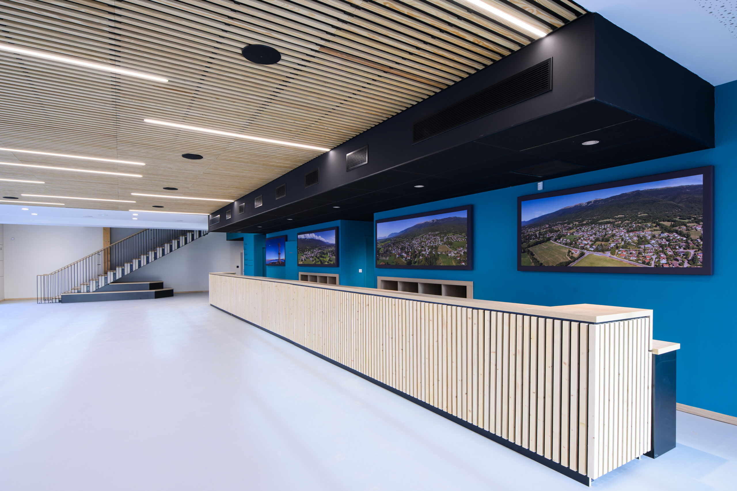 - Eclairage LED et éclairage de sécurité (2200 luminaires encastrés dans les plafonds rayonnants)