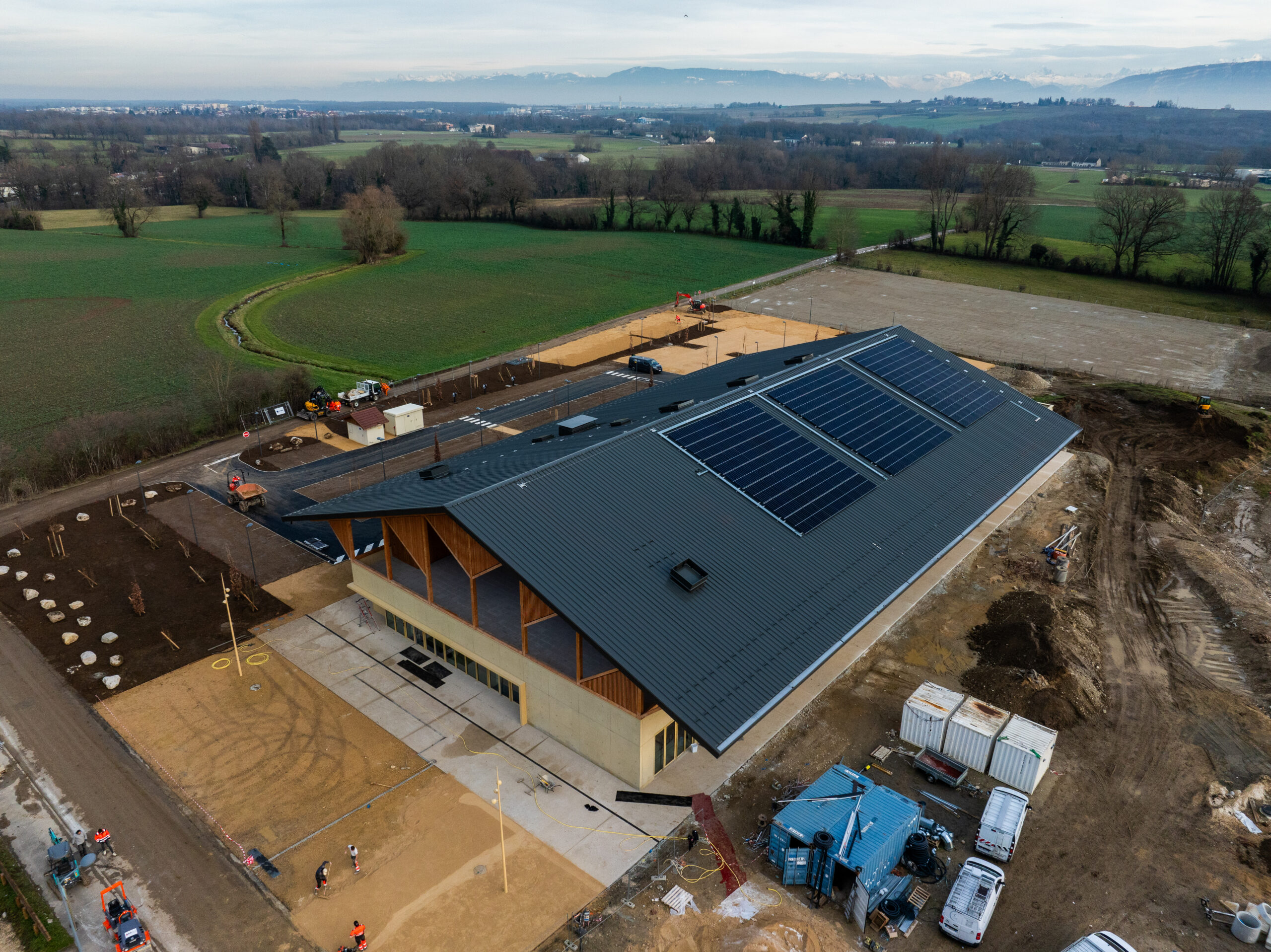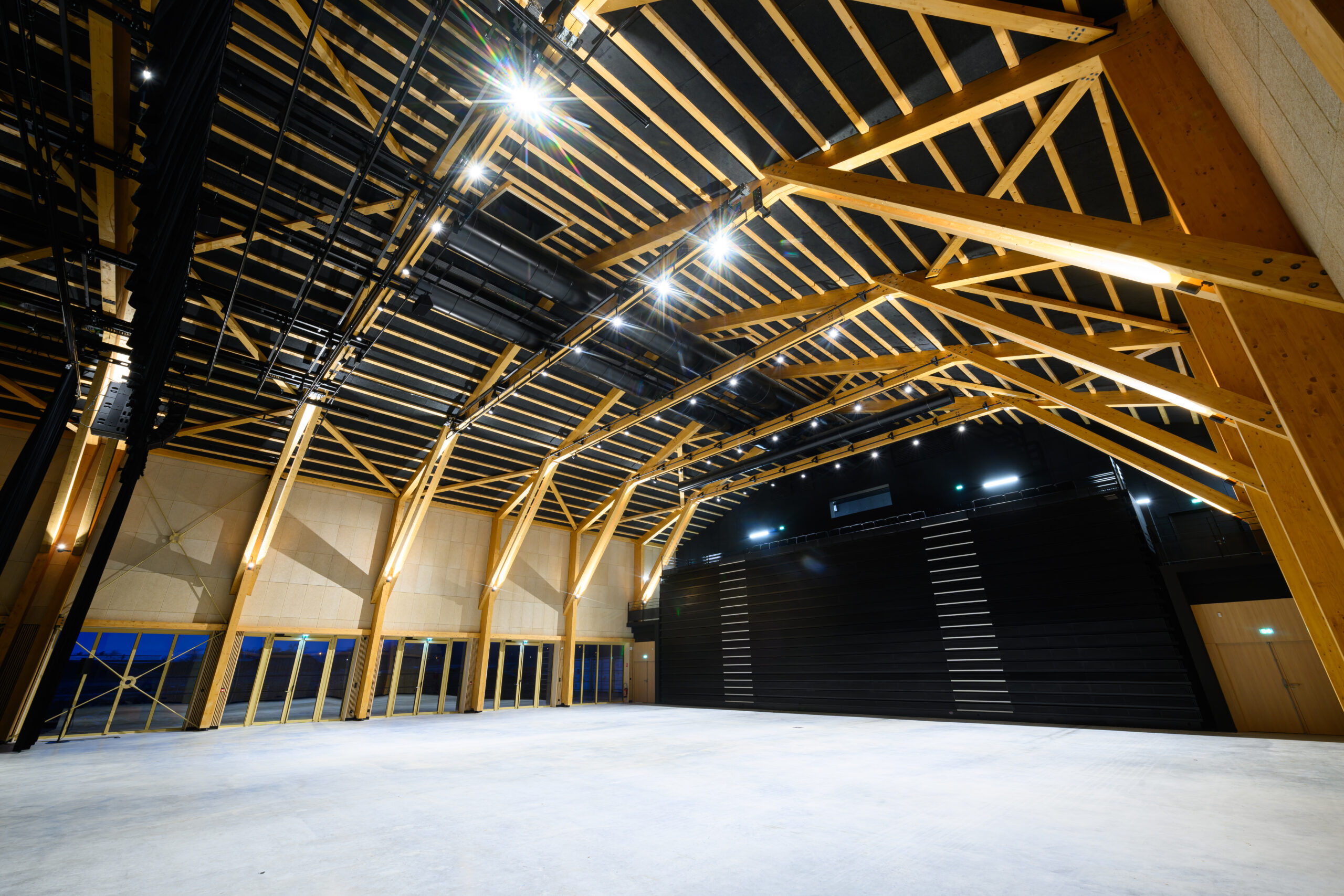 Construction d’une salle de spectacle pouvant accueillir plus de 1000 personnes. Une toiture équipée d’une installation de panneaux photovoltaïques d’une puissance de 78KvA.